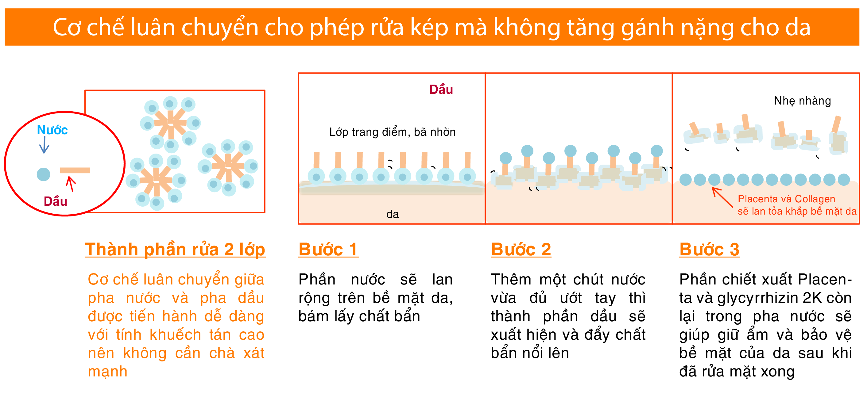 - Tẩy trang, làm sạch sâu nhưng không làm mất đi lớp dầu tự nhiên trên da. Giúp lấy đi những lớp trang điểm khó trôi nhất chỉ với 1 lần tẩy trang mà không hề gây kích ứng da hay khô da